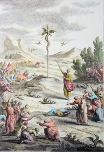Thirdly we note verse 8: “And the Lord said unto Moses, Make thee a fiery serpent, and set it upon a pole: and it shall come to pass, that every one that is bitten, when he looketh upon it, shall live.” This passage is a beautiful picture of how those bitten by the Satanic curse of sin can not heal themselves from sure death; but they need only look in faith to Christ’s work on the cross to live. Indeed, Christ applied this passage to himself: “And as Moses lifted up the serpent in the wilderness, even so must the Son of man be lifted up: That whosoever believeth in him should not perish, but have eternal life” (John 3:14-15). Yet it seems strange to employ the cursed snake (a symbol of Satan from Genesis 3:1 to Revelation 20:2) as the parallel of Christ.