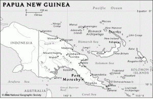 Veteran missionary pilot Jim Blume tells of numerous credible encounters that New Guinea natives (about 70 eyewitness and 150 secondhand reports) conveyed to him over the last thirty years. These reports regarding the Ropen cover a wide geographic range: 150 miles southeast of his Wau mission station down the coastline to Popondetta and as much as 250 miles north up the coast to Wewak (Blume, 2000). However, long-time missionaries in Kavieng, at the northern tip of PNG, and those working in the Eastern Highlands province are not aware of this animal (Crossman, 2003). But there continue to be reports emanating from the island of Umboi. Wycliffe translators explained to me that the island population is linguistically divided between Kovia speakers (Papuan) which call the creature “Ropen,” and the Austronesian speakers (Mbula and Mutu dialects) who refer to it as “Ndwaaza.” The northernmost Mbula dialect uses still a different term, “Kundua.” Both “Ndwaaz(a)” and “Kundua” mean “shooting star.” In the western highlands there are stories from long ago about this creature, which they call the “Duos,” which appears to be an abbreviation of “Ndwaaz(a).” (For example, see Sucik, 2004 and Whitcomb, 2009.)