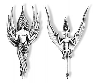 As Western missionaries began to penetrate the deep jungles and remote islands of PNG, stories of a flying creature called the Ropen (“demon flyer”) began to be reported. Described as a nocturnal creature, the Ropen possesses two leathery wings like a bat with “hands” on each wing, a long tail with a diamond-shaped flange on the end, and a prominent beak. The creature is thought to still inhabit the islands of New Britain and Umboi, located in the Bismarck Archipelago. The Ropen is said to have a taste for decaying flesh. Reports of harassment at native funeral gatherings at the government station of LabLab (on Umboi), and other attempts to disinter corpses suggests that the Ropen is a carrion animal. PNG natives will even put tin roofs over fresh graves to deter the creature.
