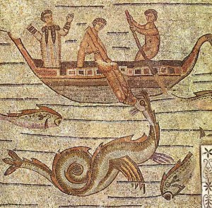 Many ancient sea serpent depictions show the creature coiling vertically and displaying “humps” that come out of the water. This makes it very unlikely to be a extant type of plesiosaur. A good example is the Aquileia Basilica floor mosaic to the left (click to enlarge). The church is located in northeastern Italy. Dating to about 400 AD, the mosaic shows the mariners throwing the prophet Jonah into the sea. The prophet is being swallowed by a ketos in the form of a sea serpent. A similar mosaic can be found at Monasterace Museum. This beauitful drago marino (sea dragon) art found at Caulonia in Italy dates to the 3rd century BC. Notice that these ancient artists depicted a fluke-like tail, mane, and horse-like head. These features are remarkably like the modern reports of Cadborosaurus and Ogopogo.