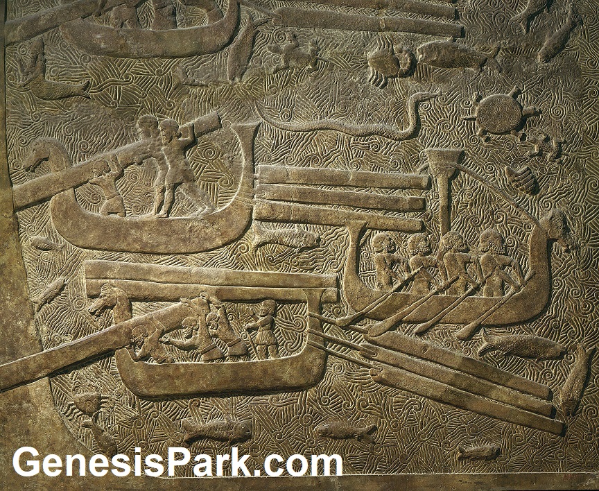Assyrian Frieze - Sargon Sea SerpentEye witness accounts and depictions of sea serpents have come down to us from throughout history. In some of these cases, the creature could well have had a large portion of its body underwater (really a plesiosaurs form rather than a serpent form). The very first recorded sea serpent observation was made by Sargon II on a Mediterranean voyage to Cyprus at about 720 BC – 705 BC. This cryptid sighting seems to be memorialized by a very interesting frieze made during the Assyrian domination of Phoenicia (late 8th century BC). It shows Phoenician longboats loading up lumber. Notice the sea serpent with its neck upright in the background up top. Its large size can be judged by the sea turtle depicted just in front of it.