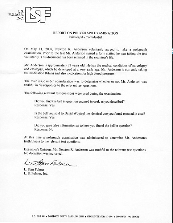 Genesis 4:22 states that Tubal-Cain was “an instructor of every artificer in brass and iron…” Perhaps when his civilization came to an end in the flood, one of his bells was buried with a mass of vegetation that became coal and ended up thousands of years later in Newt Anderson’s coal bin. The bell was prominently featured in the 1992 CBS docudrama production called Ancient Secrets of the Bible and is now part of the Genesis Park collection. Later on, Newton Anderson spent a great deal of time researching the figure atop the bell. He discovered similarities to the Babylonian Southwest Wind Demon, called Pazuzu. The demon typically is shown with a prominent headpiece like the bell figure. Indeed the bell’s headpiece clearly is broken off, signifying that it may have been quite a bit taller. The Hindu deity Garuda is sometimes depicted on top of bells, as is the Egyptian Isis. The kneeling posture with hands clasped is quite like Garuda representations. Because of this, some have argued that it must be an Indian Ghanta Bell. But ancient religious worship seems to take on similar forms in various cultures (like the Venus figurines from disparate lost cultures and the ancient fascination with pyramids), which doesn’t necessitate that they were culturally related. At our request, Mr. Anderson was examined by an expert polygraph specialist to further validate his claims. He passed the test and the report can be seen here.