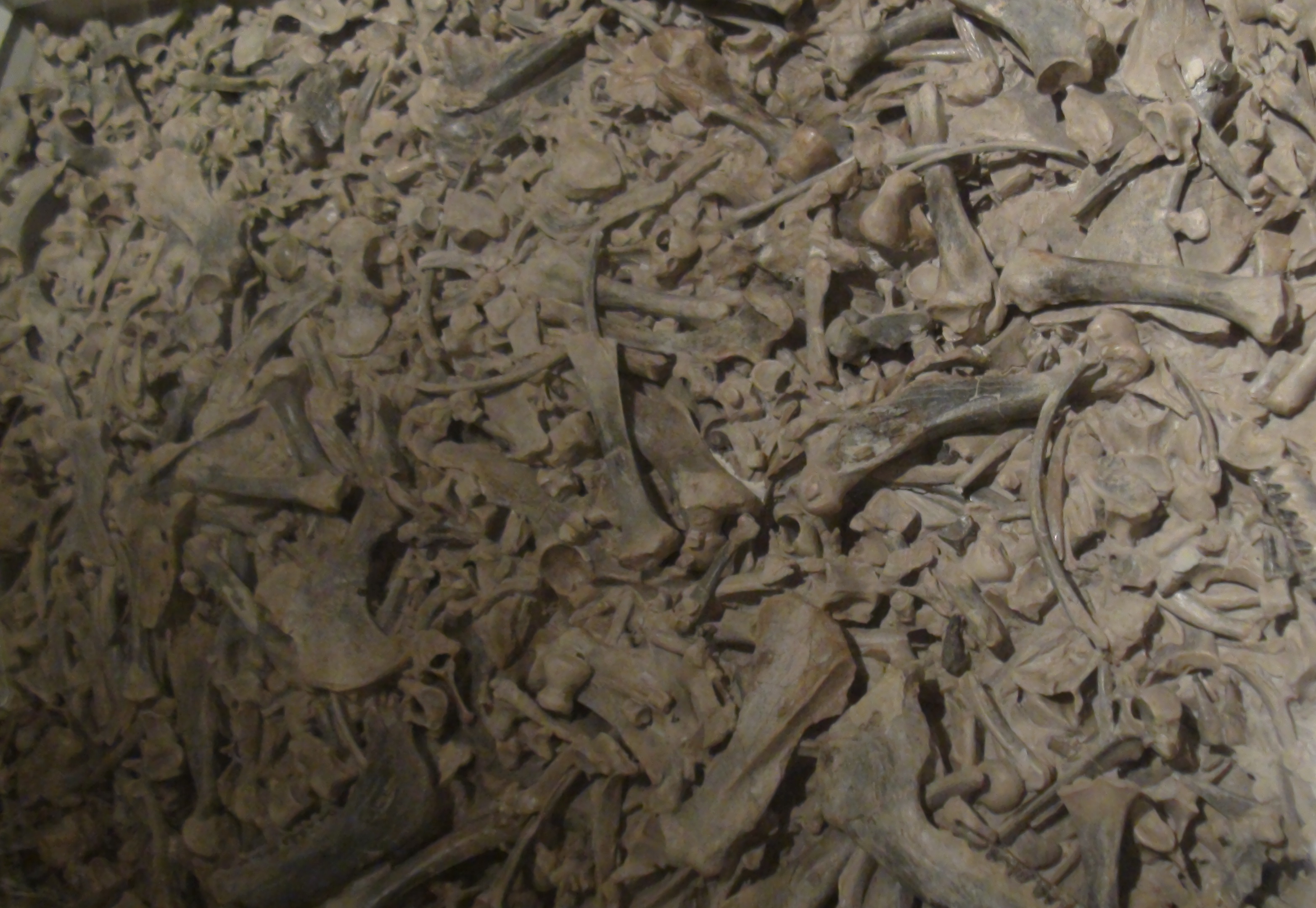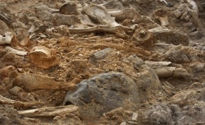 9,000 animals was found buried in alluvial deposits. The remains of hundreds of rhinos, three-toed horses, camels, giant wild boars, birds, plants, trees, sea shells and fish are mixed and intermingled in great confusion. In Tanzania, Belgium and Mongolia similar massive catastrophes captured vast populations and trapped them in a fossil graveyard of sediments and debris.