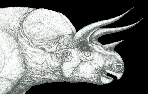 Although only superficially similar, the heads of the chameleons have been compared to the horned dinosaurs. The Veiled Chameleon’s large frill is reminiscent of a Protoceratops (see above). The Jackson’s Chameleon sports three horns like the famous dinosaur Triceratops (see to the right). Perhaps these two very different horned reptiles employed their horns for similar purposes–for both display and jousting.