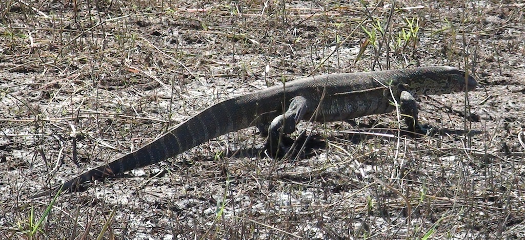There are dozens of species of monitor lizards found in Africa, Asia, Indonesia, New Guinea, and Australia. Indian Monitors are thought to have been transported by natives to the Polynesian Islands, possibly as a food source. Monitors have a unique ability to greatly increase the size of the mouth cavity enabling them to swallow their prey whole. The Nile Monitor (right), the largest lizard in Africa, sports a distinctive blue tongue and has been observed to grow as long as 8 ft. It will lay eggs