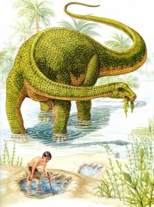 There is tremendous variety in the thousands of dinosaur species that have been discovered around the world. Different dinosaurs ranged in weight from 2 kg (4 lb), in the case of Compsognathus, and up to 73 metric tons (160,000 lb), in the case of Brachiosaurus. A similar giant, Ultrasuarus, was named from a few very large bones that were discovered. Some scientists estimate that this creature was 100 feet long and weighed up to 150 tons. These large sauropods, with their small mouths and massive frame, must have spent most of their waking hours eating. They would have basically been Jurassic weedwhackers, as they swept their long necks back and forth like a vacuum hose, stripping off plant material and sucking it down! Many dinosaurs were large, weighing in at around a ton. Most were herbivores, but some large saurischians were carnivorous. The majority were four-footed but some ornithischians and all carnivores strode on their hind legs. The average size for a dinosaur is approximately that of a bison, about 1,400 pounds. (Clarey, T., and Tomkins, J.P., “Determining Average Dinosaur Size using the Most Recent Comprehensive Body Mass Data Set, Answers Research Journal, 2015, pp. 85-91.)