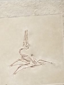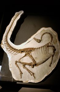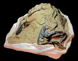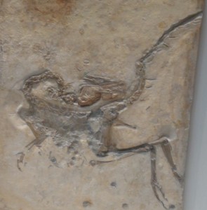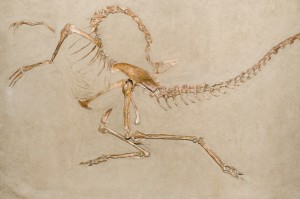 Others emphasize how a watery grave worked with the dinosaur physiology to create this unique posture: “A strong ligamentum elasticum was essential for all long necked dinosaurs with a long tail. The preloaded ligament helped them [by] saving energy in their terrestrial mode of life. Following their death, at which they were immersed in water, the stored energy along the vertebra was strong enough to arch back the spine, increasingly so as more and more muscles and other soft parts were decaying. It is a special highlight that in the Compsognathus specimen, these gradual steps of recurvature can be substantiated, too. Therefore, biomechanics is ruling the postmortem weird posture of a carcass in a watery grave, not death throes.” (Reisdorf and Wutteke; cited in “Why Do Dinosaur Skeletons Look So Weird?,” ScienceDaily.com, Feb. 16, 2012.)