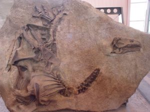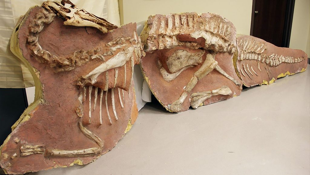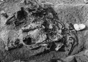 A similar phenomenon to what we have discussed above involves the question of why the massive, armored Ankylosaurus dinosaurs are almost always found fossilized lying on their backs? For example, 26 out of 37 fossil ankylosaurs discovered in Alberta, Canada, were found upside down. Paleontologists have puzzled over this belly-up death pose since the 1930s. Now a new theory presented in 2017 at the Society of Vertebrate Paleontology meeting in Calgary, Alberta suggests this happened because of a flood mechanism. “We used computer modeling to show that ankylosaurs likely flipped over due to a phenomenon called ‘bloat-and-float,’ where the gases that accumulate in the bloating belly of the carcass cause the animal to flip over while suspended in water,” states researcher Jordan Mallon, a paleobiologist at the Canadian Museum of Nature in Ontario, Canada in an interview with Live Science. The computer model showed that when an ankylosaur’s center of gravity (a downward force) didn’t match its center of buoyancy (an upward force), a disturbance such as a breeze, current or wave could cause the rotund, bloated animal to turn upside down. After some time it would sink that way and get buried and fossilized.
