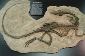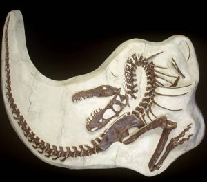 The evidence of a drowning causing the dinosaur’s demise continues to mount up from all over the world. “When palaeontologists are lucky enough to find a complete dinosaur skeleton—whether it be a tiny Sinosauropteryx [right] or an enormous Apatosaurus—there’s a good chance it will be found with its head thrown backwards and its tail arched upwards.” (Switek, B., “Watery Secret of the Dinosaur Death Pose,” New Scientist, November 23, 2011.) The worldwide Genesis Flood provides a straightforward explanation for all these dinosaur fossils and ties in well with the fact that dinosaur bones are very often mixed with marine sediments. For example, sharks have been found alongside the dinosaurs in Montana’s famous Hell Creek fossil beds and the popular Spinosaurus has been found in the same Moroccan rock layers as sharks, sawfish, ray-finned fishes, and coelacanths. (Ibrahim, Nizar, et. al., “Semiaquatic Adaptions in a Giant Predatory Dinosaur,” Science 345, 2014, pp. 1613-1616.)
