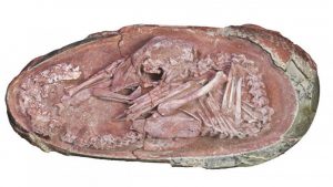 Paleontologists use the term “trace fossils” for preserved remains of biological activity that were not originally part of the organism’s body (also known as an ichnofossil). These include things like nests, footprints, burrows, gastroliths (stones swallowed to help with digestion), and coprolite (fossilized dung). Fragile remains like tracks and nests require quick burial to survive. Yet we have a surprising amount of these trace fossils that help inform us regarding dinosaur activities. In Patagonia, Argentina there are thousands of fossilized sauropod eggs. In the Pyrenees mountains of Spain & France is a site containing about 300,000 dinosaur eggs. The deserts of Kyrgyzstan, Mongolia and China have the world’s largest deposit of dinosaur eggs. Some of these were so well preserved by rapid burial that fine details of the embryo can be seen.