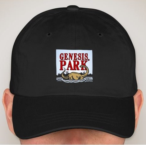 Make a fashion statement with a stylish Genesis Park silk necktie. Or sport a bold Genesis Park logo ball cap, in black or white. You’ll be pointing people to our popular creationist dinosaur website at the same time as initiating some interesting conversations about origins, cryptozoology, and dinosaurs!