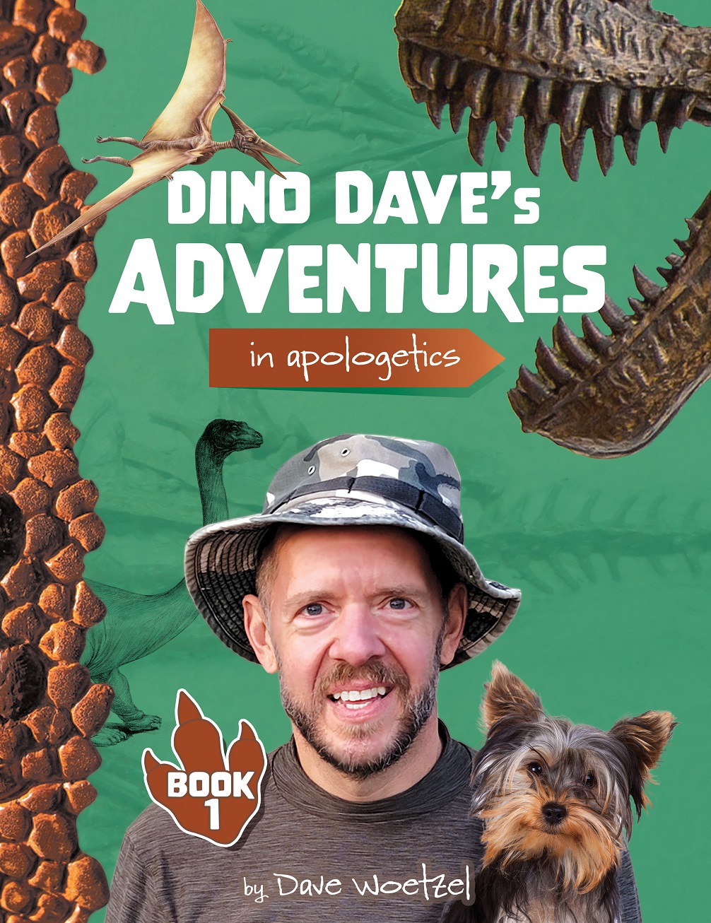 Dino Dave’s Adventures in Apologetics – Book 2 continues our mission of providing young people with the hard evidence that supports Biblical authority. This second installment of 12 adventure stories follows up on our popular Dino Dave’s Adventures in Apologetics – Book 1 and includes all fresh material. Chapters include the Cryptid Champ, the Complicated Cell, Fossil Fuels, and Lava Layers. Each topic is personally researched by the author, Dave Woetzel, and each story is accompanied by rich, real-life graphics. Geared especially towards elementary children, this soft cover book will be an effective follow-up to the important, worldview lessons presented in the first book. Prepare the young people in your life for the inevitable secular onslaught with Dino Dave’s Adventures. The eBook is available as well. Take a peak inside!